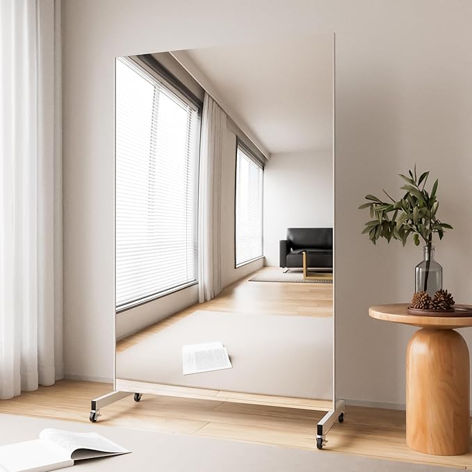 - 【Huge Rolling Mirror on Wheels】-This huge oversized mirror is 71" X 31"with rolling wheels,the weight of this large size 71*31 Inch mirror is about 13 bl,you can easily move the mirror on wheels to anywhere.