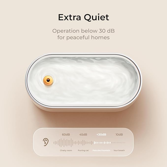 - WITH CARE FOR YOUR CAT — Crafted with high-quality, human-grade ceramic basin, the Petcube Fountain’s cat water bowl offers a sleek, durable, and hygienic drinking solution for effortless cat essentials in any home setting