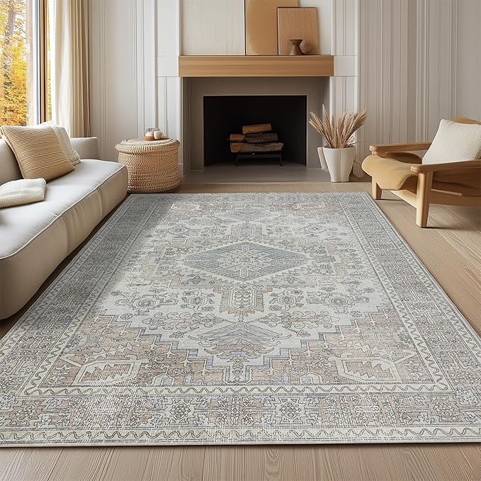 Machine Washable Rugs 8x10 Area Rugs for Living Room,Ultra Soft Low Pile Retro Rugs for Bedroom,Dining Room,Large Non Slip Carpet Vintage Distressed Accent Rug for Farmhouse Office Home Decor
