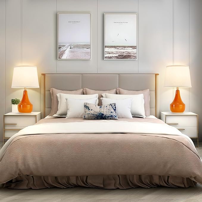 - 【Modern Styles And Widly Use】The beside lamp set of 2 are made with ceramic body, which fit in any styles. With a ceramic lamp body means resistant corrosion and tarnishing waterproof. This table Lamp Set of 2 is an ideal nightstand lamp for living room, bedroom. Also ideal as a gift for family and friends.