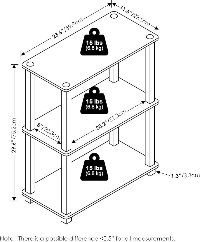 - WEIGHT CAPACITY: Each shelf of this shelving unit supports up to 15 lbs with a total weight capacity of 45 lbs, ensuring reliable storage for books, storage bins, or decorative accents while maintaining everyday durability