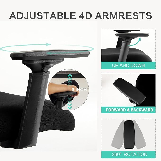 - šš šš«š¦š«šš¬š: This gaming desk chair features flexible 4D armrests. You can adjust the height, front and rear, and 360 rotation angles, which is to provide comfortable support for your arms and shoulders
