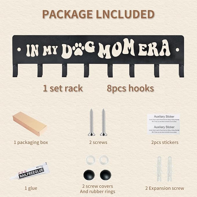 - PERFECT GIFT FOR DOG MOMS: This key holder with the slogan “IN MY DOG MOM ERA” is a unique and thoughtful gift for any dog lovers. Can be used as a wall decoration in any room, perfect for entrance, bedroom, kitchen, living room, office decoration and use