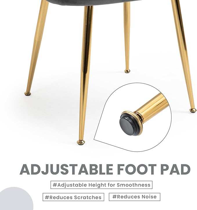 - 【Sturdy & Stable Structure】The velvet kitchen chairs with gold painted metal legs add a touch of elegance to your living area. Durable high-quality structure metal plated legs can provide a load-bearing capacity of up to 300lbs, lightweight but sturdy. Meanwhile, each metal tapered leg is equipped with adjustable foot pads, which can maintain balance on uneven surfaces, carpets, or hard floors, and protect the floor from scratches.