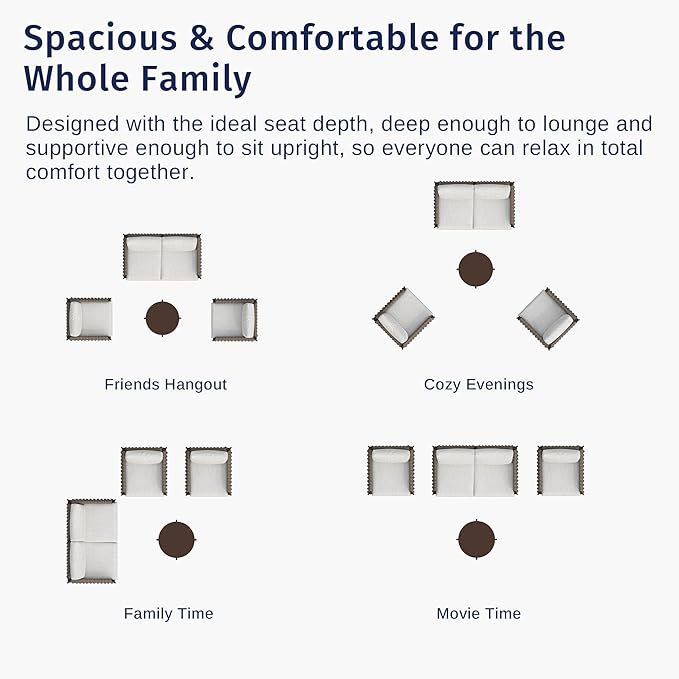 • SUPERIOR COMFORT WITH ROCK-SOLID STABILITY: Relax with confidence—this set includes a loveseat and two armchairs with reinforced steel frames. The loveseat supports up to 700 lbs, and each armchair holds up to 350 lbs without wobbling. Designed for lasting durability, its rust-resistant, weatherproof construction keeps it sturdy and reliable year-round