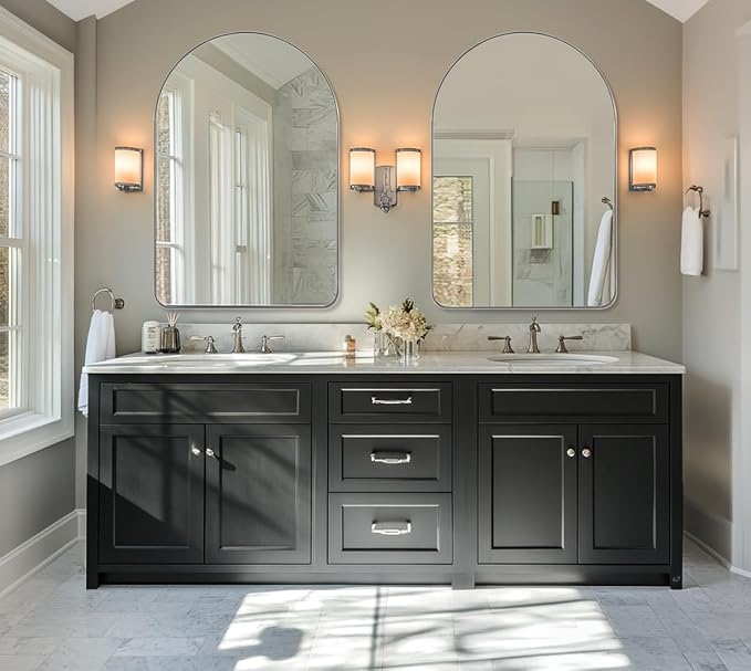 - Clear Reflection: Equipped with a 4mm ultra-clear glass surface, this arched mirror provides distortion-free reflections that make your grooming routine effortless; enjoy bright, crisp images that ensure you look polished at all times