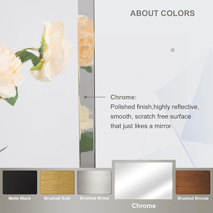 - EXPERTLY CRAFTSMANSHIP: ANDY STAR pays attention to details and take strict quality control from the selection of materials to the manufacturing techniques. Each chrome bathroom mirror is made according to a five-star hotel standard and manufactured more than 50 steps of processing
