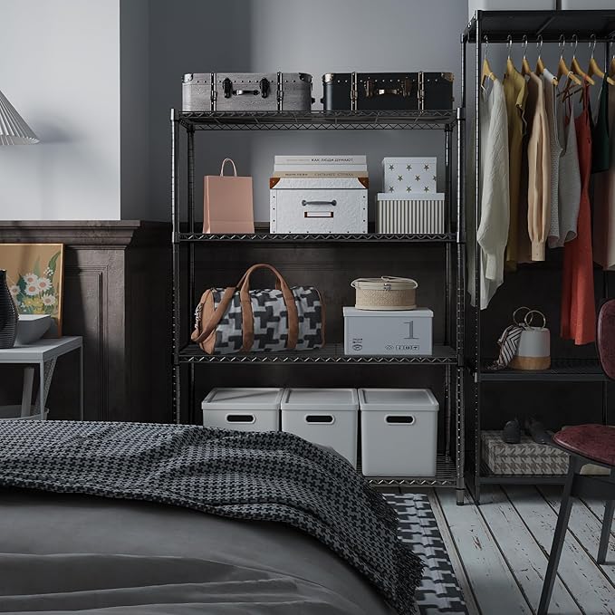IZEUK 1400 LBS Garage Black Shelving Wide Storage Shelves 4 Tier Adjustable Heavy Duty Metal Wire Rack Standing Shelf Unit for Kitchen Office College Dorm Garage Warehouse 15.8" x 45.8"x 59.4"