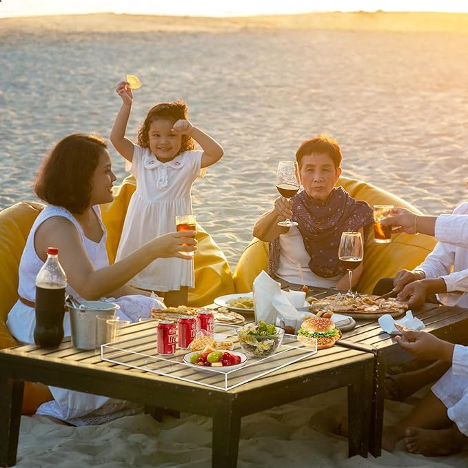 22×22 inches Oversized Clear Acrylic Ottoman Tray Extra Large Decorative Tray Spill-Proof Serving Trays with Handles King-Size Safe Edge Organizer for Coffee Table Countertop Breakfast