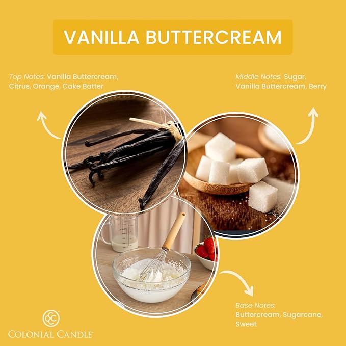 - Vanilla Buttercream: Vanilla Buttercream is the sweetest vanilla bean icing finished with a touch of citrus zest for a zing! Featuring our premium fragrance load for a superior fragrance experience.