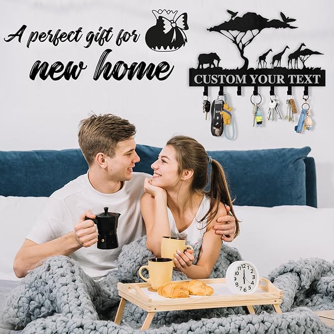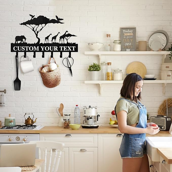 Personalized Key Holder for Wall | Custom Name Metal Cabin Key Hooks | Coat Hook Key Rack Wall Mount | Metal Wall Key Holder | Animal Theme African Art Decor for Living Room Hallway Office
