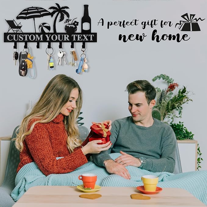 Personalized Key Holder for Wall - Beach Theme Key Holder Wall Mounted, Metal Coat Rack Hook Organizer, Key Rack Wall Hanging for Living Room, Bathroom, Entryway, Home Decor Housewarming Gifts