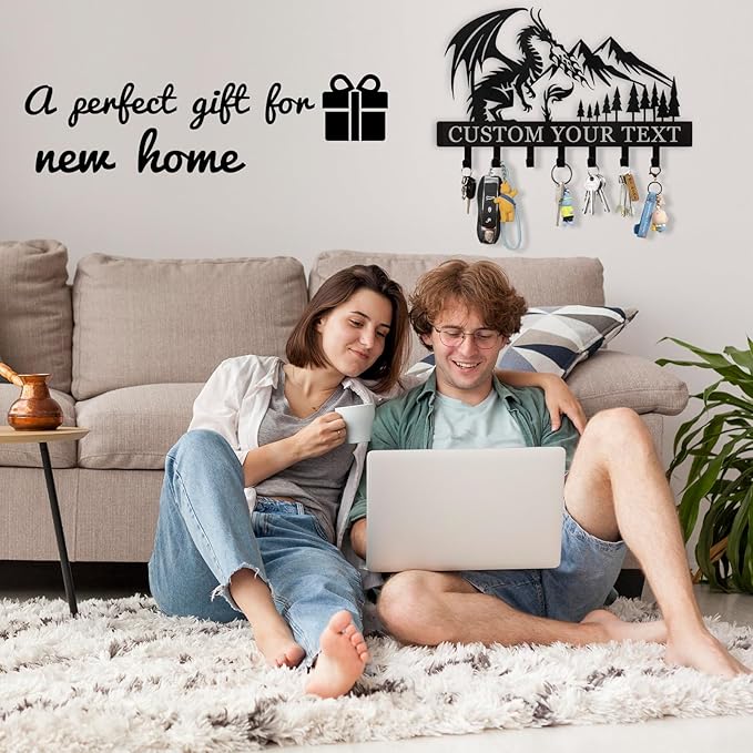Personalized Key Holder Wall Mounted, Custom Dragon Design Key Holder for Wall, Metal Key Holder Hooks Organizer, Key Hanger Decor for Living Room, Kitchen, Entryway