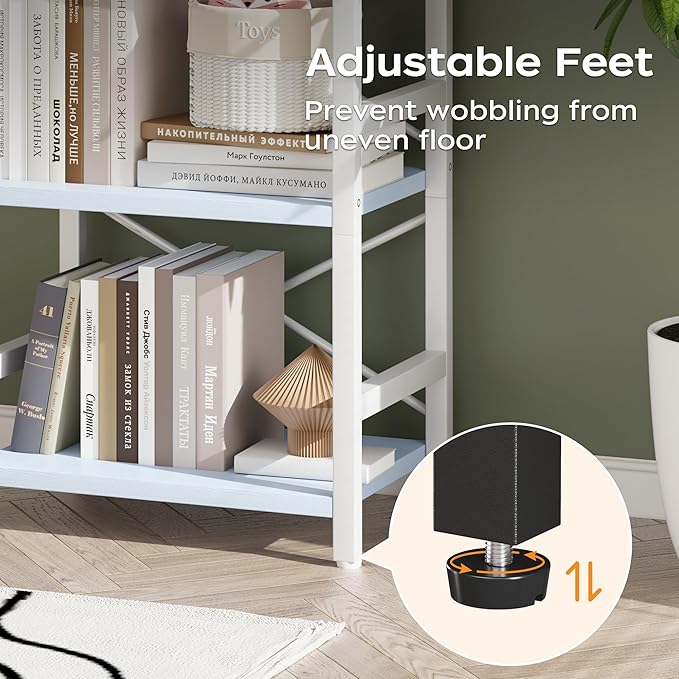 - 【Versatile Bookcase Shelf】The adjustable feet at the bottom are designed to make this industrial bookshelf suitable for different conditions of uneven floors.You can put it in your living room, study room, bedroom, and office to meet your various storage needs and greatly save your space and organizing time.This bookcase is compact and lightweight without occupy much space,you can use it at anywhere you need to better organize your messy items.