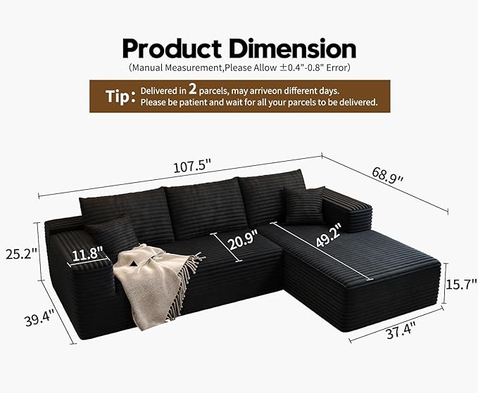 - Modular Sectional Sofa:This L-shaped sectional sofa featuring a sleek design, clean lines, and high-quality plush corduroy Fabric,This minimalist L-shaped sectional set maximizes space when placed against a wall,this corner sofa effortlessly adds a timeless and sophisticated touch to your home. Designed to be the focal point of attention, it's an ideal choice for elevating the ambiance of living rooms, apartments, and bedrooms.