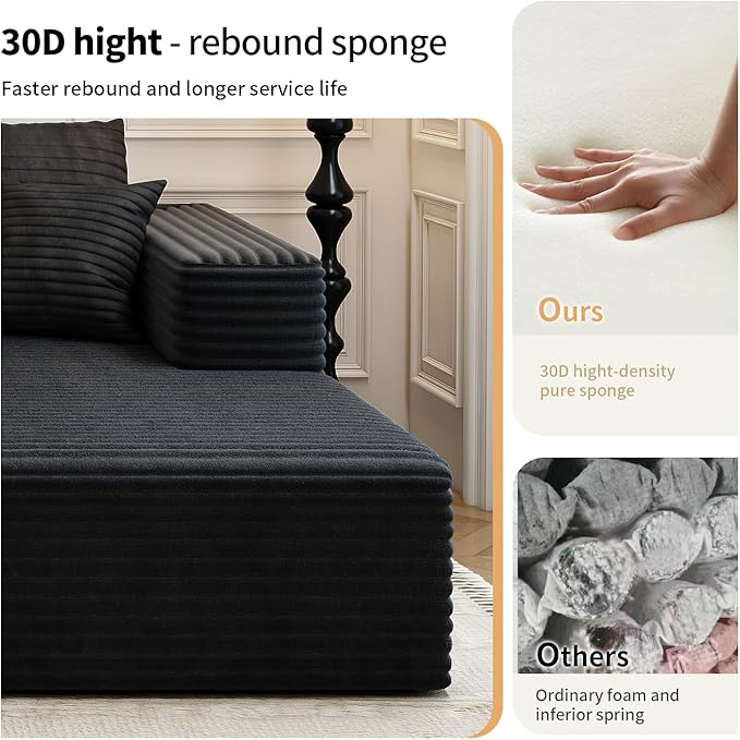 - No Assembly Required:Say goodbye to furniture assembly nightmares! our minimalist sofas require no tedious assembly to experience instant comfort. Simply unwrap and relax, no tools required. In just a few moments, your comfy cloud couch is ready to be put to use and reach a state of total luxury within 72 hours.