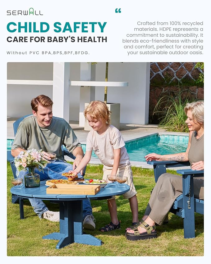 - [Weather Resistant]: This Adirondack coffee table set is made of sturdy and hard-wearing high-density polyethylene material. The realistic faux wood look easily blends in with your outdoor furniture and decor. Even when exposed to the elements, this material will not fade, crack, peel or rot!