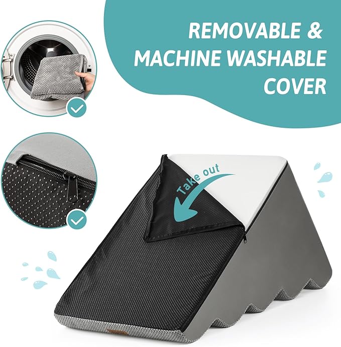 - HIGH DENSITY SPONGE: stairs for dogs to get on the bed adopt 30D high-density pure sponge, which provides better support while providing a soft return contact surface, reducing the pressure on the joints when pets repeatedly jump on high bed, sofa, couch and car. The stairs are covered with high-quality corduroy to provide additional stability