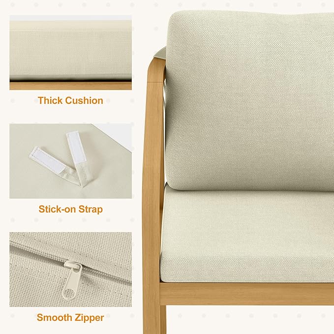 - 【Low Maintenance Design】Naturally rich in oils, acacia wood provides built-in moisture and water resistance. Simply wipe clean with a damp cloth to keep it looking fresh. Combined with removable seat and back cushions, cleaning and upkeep are quick and effortless.