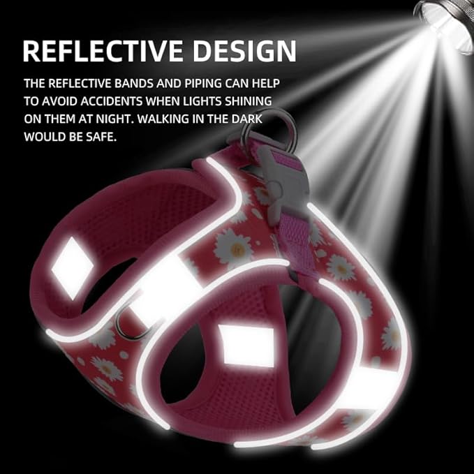 - Safety & Reflective: No-Choke dog vest harness is designed with high reflective strips and four reflective bands on the sides, 360° premium reflective strips is designed to reflect ambient light under extreme low light conditions or dark night, ,it can confirm the maximum visibility when dogs walking at night.