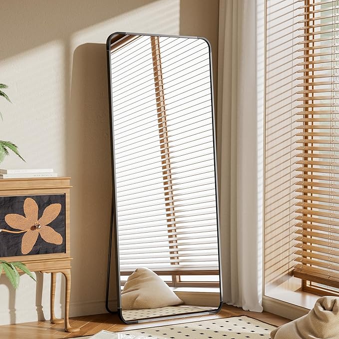 BEAUTYPEAK Black Full Length Mirror, 65"x24" Rounded Corner Floor Mirror Standing Hanging or Leaning Against Wall, Suitable for Bedroom or Dressing Room