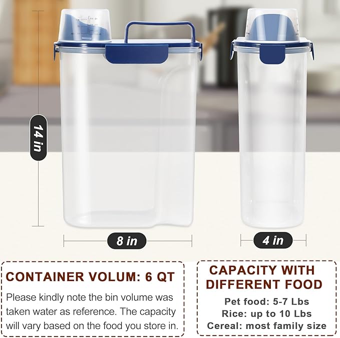 - Airtight Cat Food Container: With the snap-lock latches and silicone gaskets, the cat food storage container can shut tightly to ensure pet food stay super fresh. You dog or cat won't open the container and make a mess any more