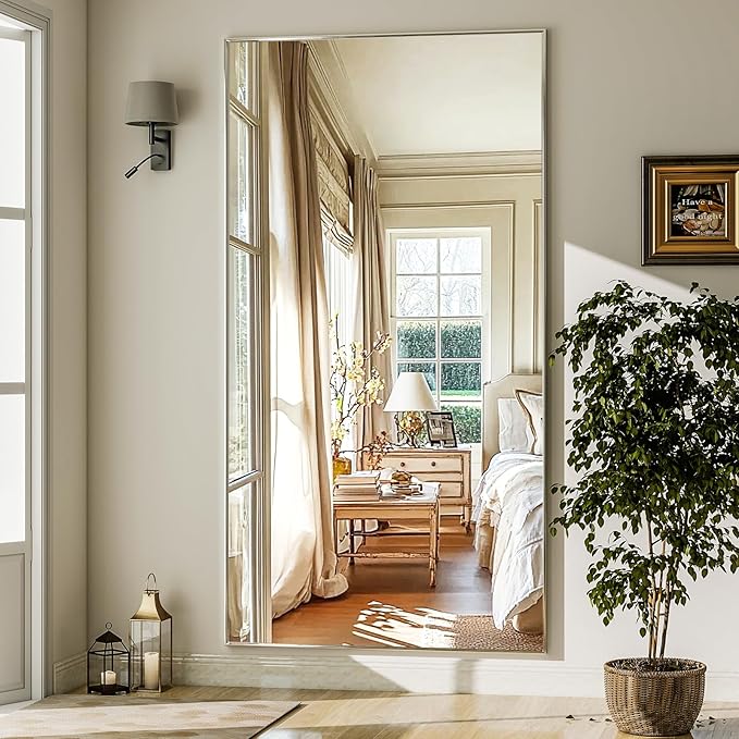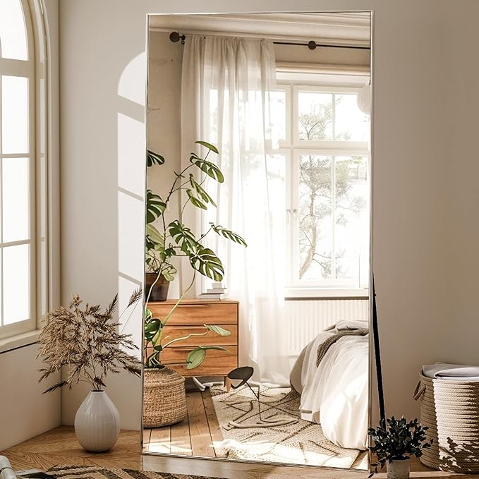 GLSLAND 71"x31" Full Length Mirror Extra Large Hanging or Leaning Rectangle Mirror Aluminum Alloy Thin Frame Bedroom Floor Dressing,Silver