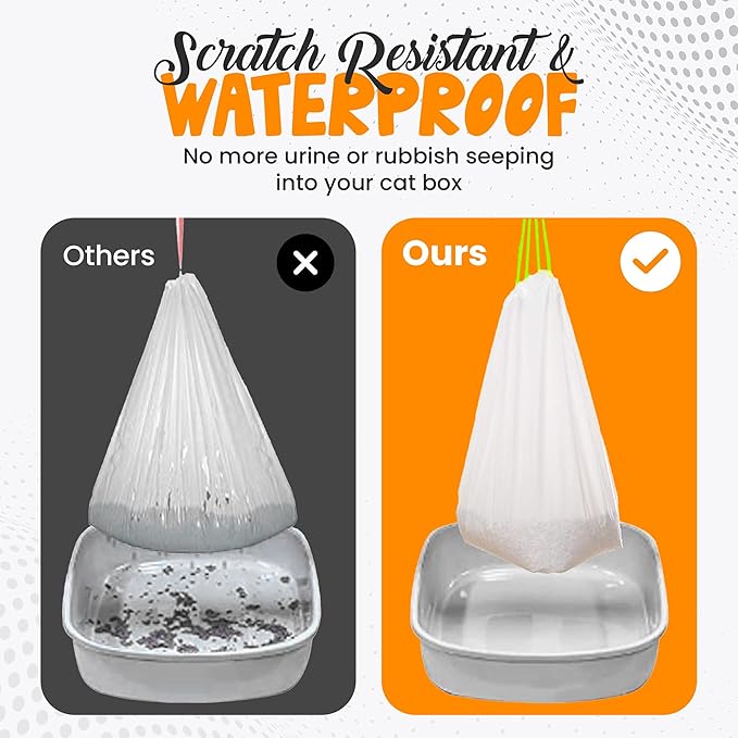 - Super Thick and Durable Litter Bags: These sturdy litter bags are made from heavy-duty material, resistant to scratches, tears, and waterproof. Say goodbye to urine or waste seeping into your litter box. Tough enough to withstand your cat's adorable claws.