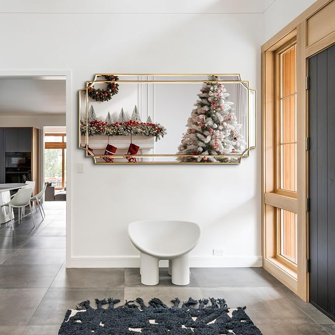 - Gold Foil Design: With a handcrafted gold leaf finish on the gold mirror's border, this mirror is rectangular in shape and complements most home décor, whether you use it as a wall art decoration or a bathroom mirror