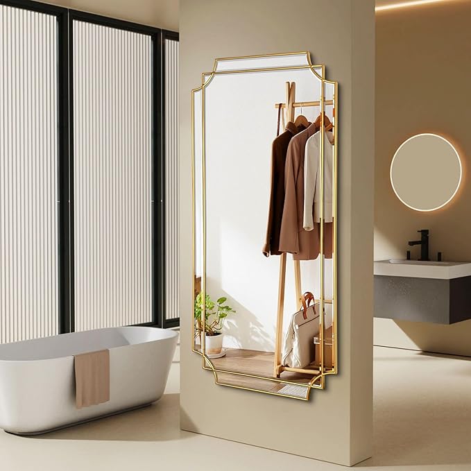 Gold Full Length Mirror for Wall, 59"x30" Full Body Rectangle Beveled Mirrors for Dressing, Large Modern Elegant Decorative Mirror for Living Room Entryway Hallway Bathroom Bedroom