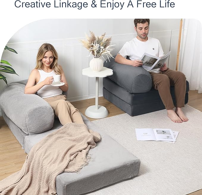 - Foldable Sofa Bed: Enjoy the flexibility of our ingenious futon sofa bed design. The two foam seats are connected, transforming the single foldable sofa into a spacious couch bed. This convertible feature makes it perfect for guests in any space