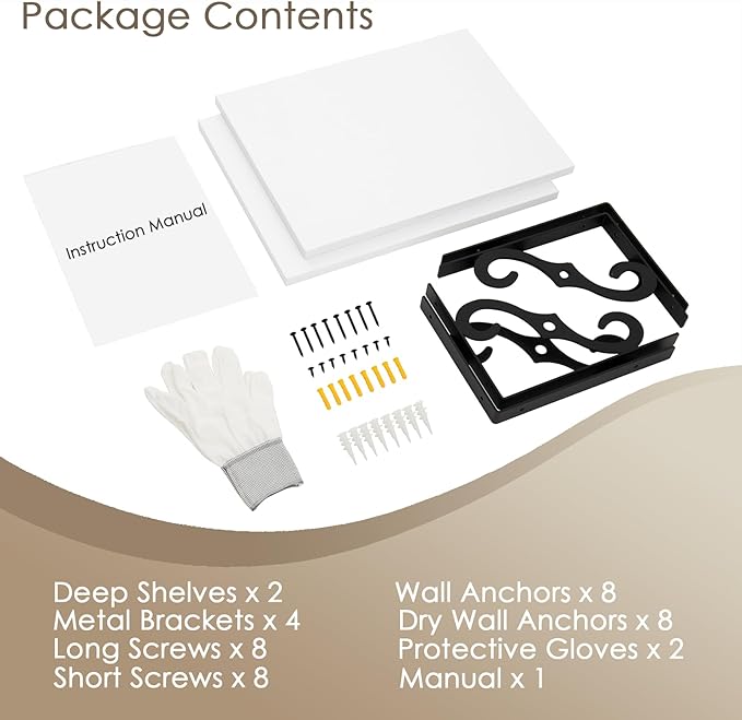 - 【Sturdy & Durable】Crafted from high-grade particleboard and metal brackets, the hanging shelves are built to last. The sturdy construction guarantees durability, withstanding the weight (up to 22lbs) over time. They are not only strong but also resistant to wear and tear, maintaining its sleek appearance for years to come