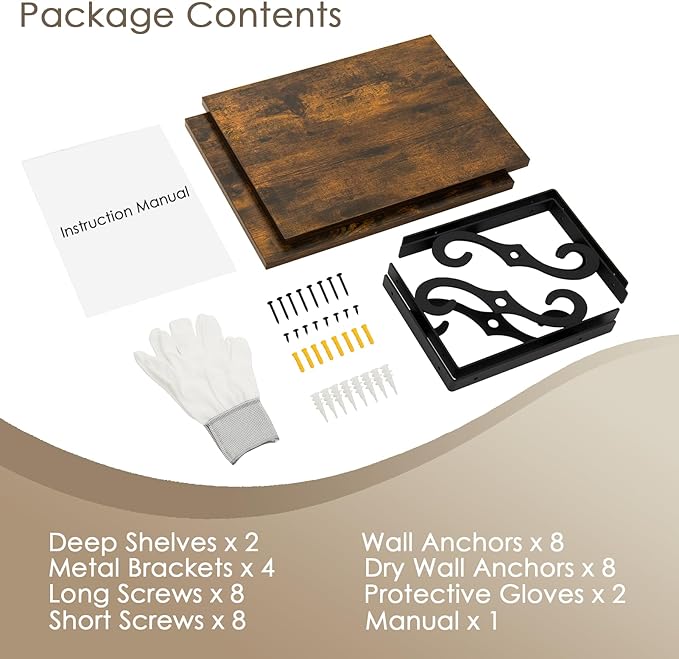 - 【Sturdy & Durable】Crafted from high-grade particleboard and metal brackets, the hanging shelves are built to last. The sturdy construction guarantees durability, withstanding the weight (up to 22lbs) over time. They are not only strong but also resistant to wear and tear, maintaining its sleek appearance for years to come