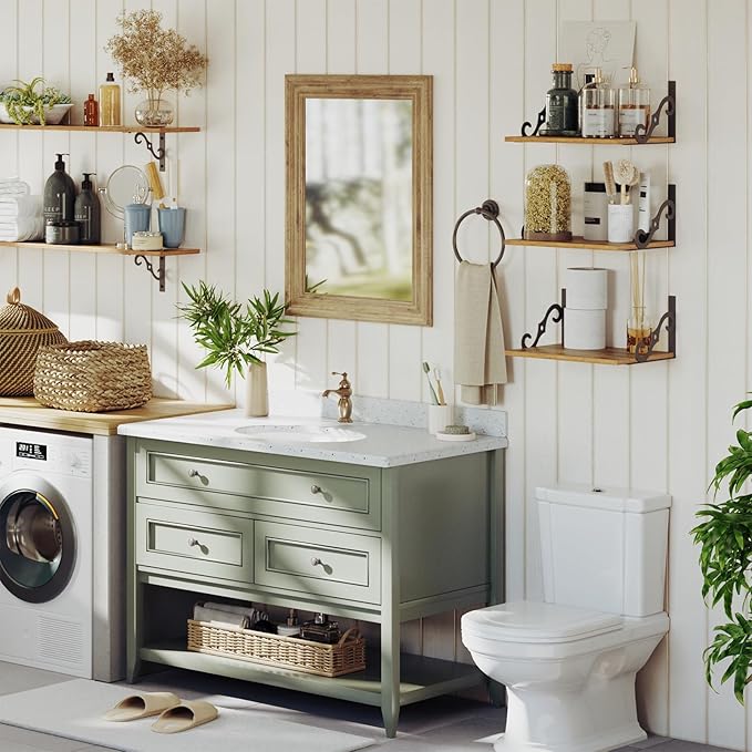 - 【Versatile in Any Room】Metal brackets can be installed on the top or bottom of the shelf. Use it as a bookshelf in the study, a floating nightstand in the bedroom, a display shelf for family photos and legos in the living room, a bathroom shelves for toiletries. Upgrade your kitchen and laundry with these ledges