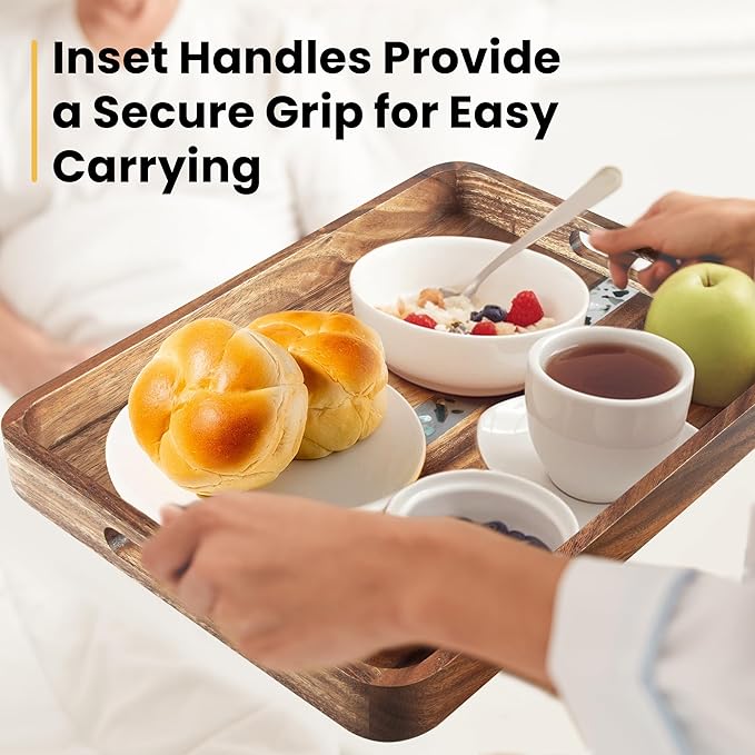 - 【Premium Acacia Wood】: Crafted from natural acacia wood, this wood serving tray is sturdy and stylish, adding a warm, natural touch to your home as a decorative tray or ottoman tray.