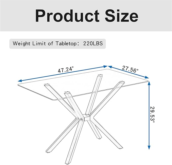 - Material: Tempered glass tabletop+metal legs.