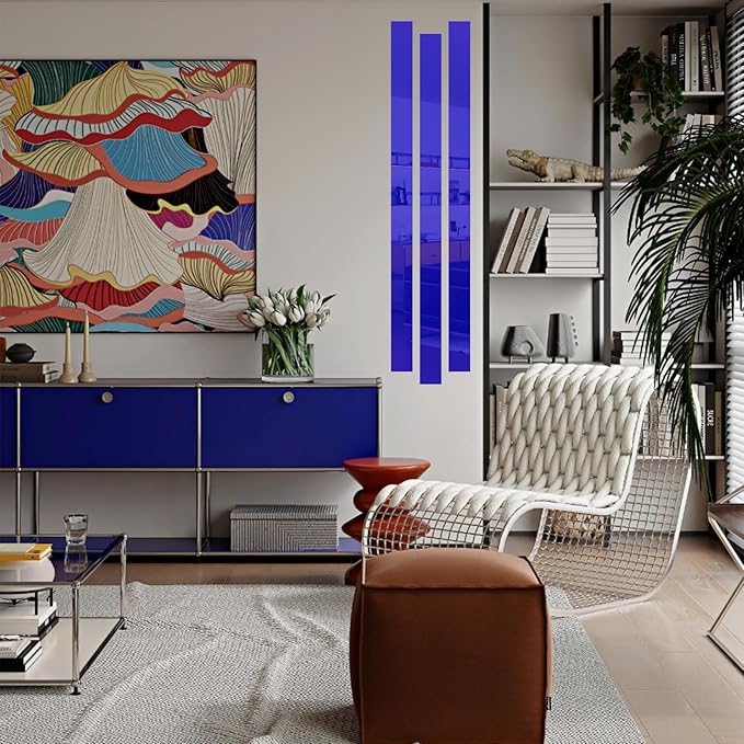 10Pcs DIY Striped Mirror Stickers 1.96" Wide Self Adhesive Removable Long Acrylic Frameless Mirror Sheets for Home Living Room Bedroom DIY Decor (Dark Blue)