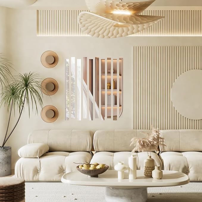 10Pcs DIY Striped Mirror Stickers 1.18" Wide Self Adhesive Removable Long Acrylic Frameless Mirror Sheets for Home Living Room Bedroom DIY Decor (Silver)