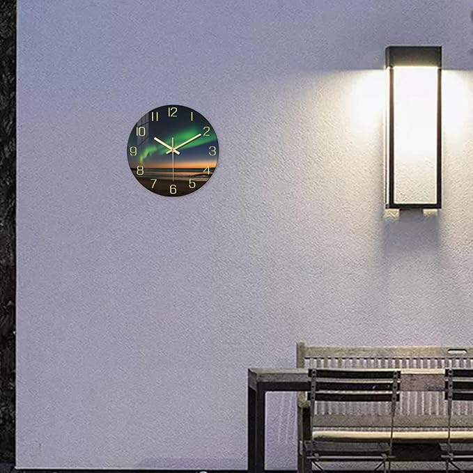 - 1.[Size] - The beach wall clock is 12 inches x 12 inches,HD glass wall clock,frameless analog wall clock,round wall clock for bedroom,decorative wall clock for living room,small wall clock for bathroom,quartz wall clock for office.