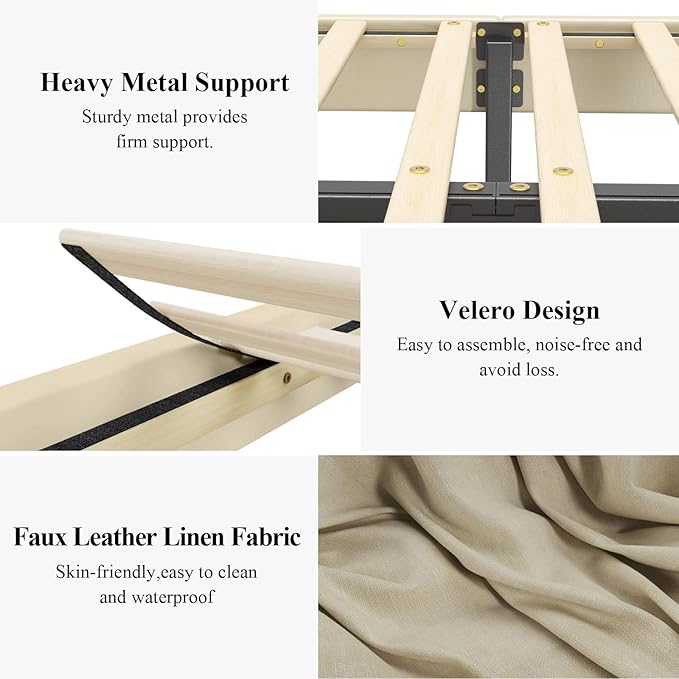 - 【Noiseless Design】Both sides of the bed frame are specially designed with EVA sound absorbing cotton and Velcro. This design not only can firmly fix the wooden support bar to keep it stable, but also plays an excellent noise reduction role. It effectively prevents various squeaking sounds that may occur during use, and even the slightest sound can be eliminated to the extent