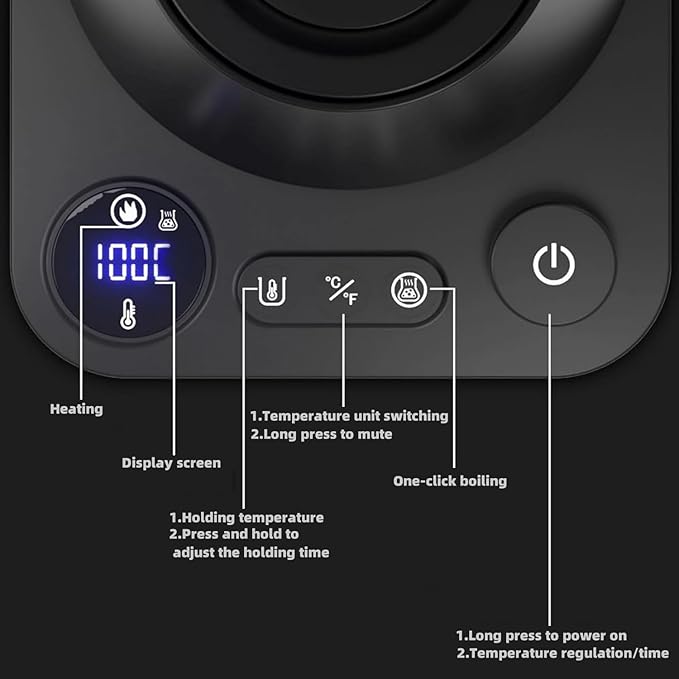 - Temperature Control and LED Display: The built-in NTC thermistor can sense a 1-degree change, and the knob can precisely adjust the temperature to ensure the taste and quality of tea; the LED display panel can show real-time temperature to keep you informed of the heating progress.