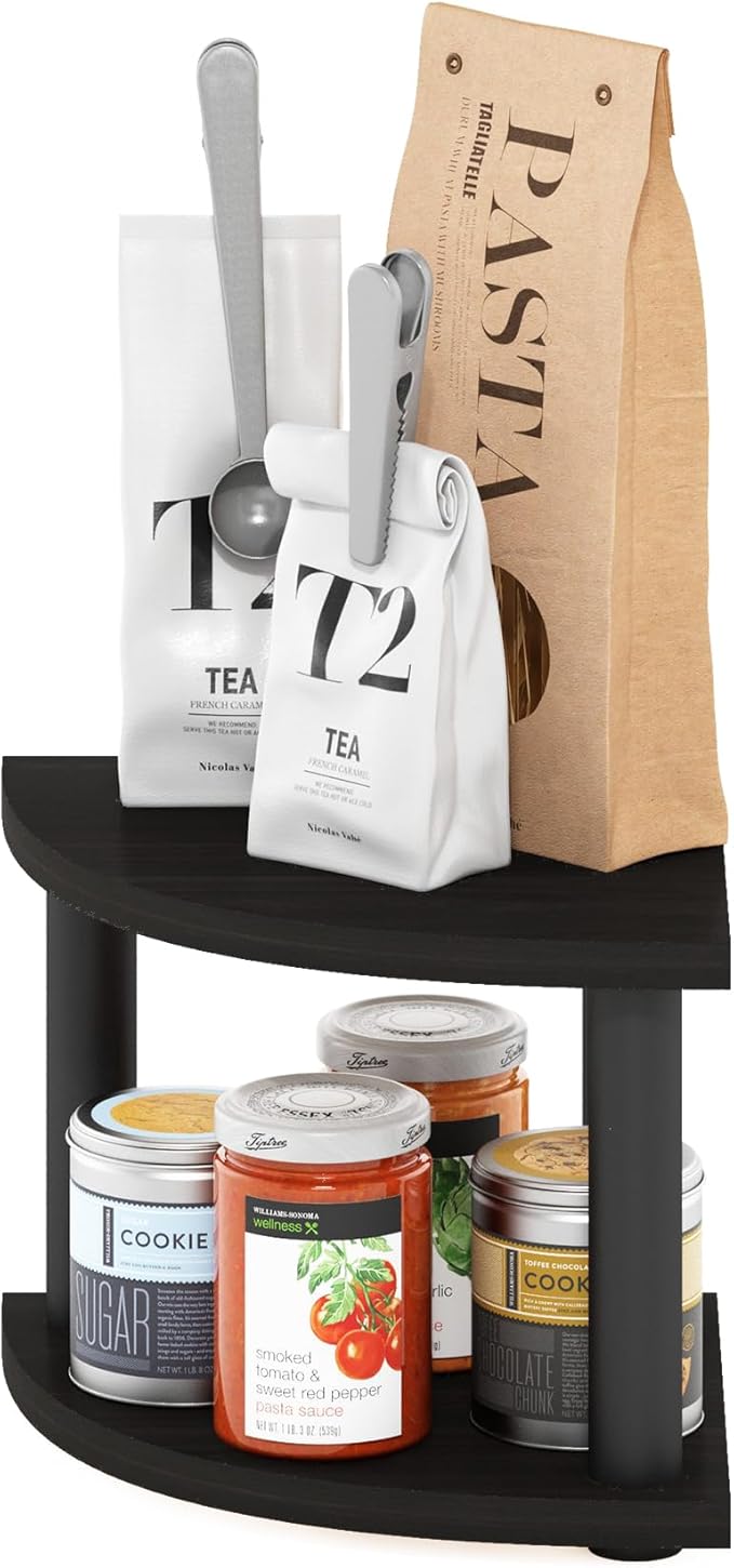 - 2-TIER COUNTER SHELF: Compact corner shelf stacks two levels of storage on kitchen counters, islands, coffee bars, or pantry shelves to keep essentials visible and within reach