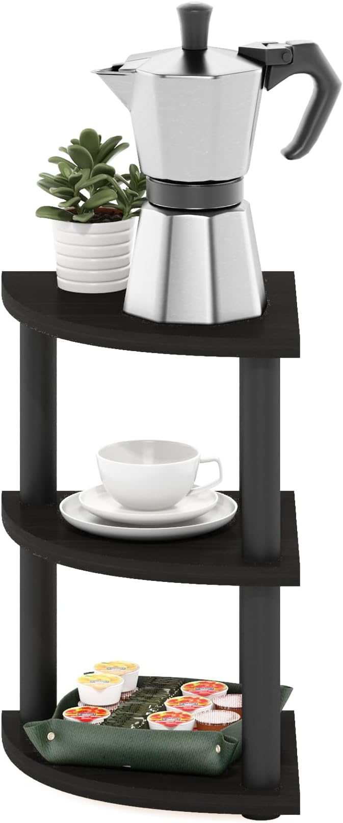 Furinno Turn-N-Tube Kitchen Countertop Organizer, 3-Tier Corner Countertop Organizer Shelf, Corner Shelf, for Kitchen, Pantry, Organizers and Storage, Espresso