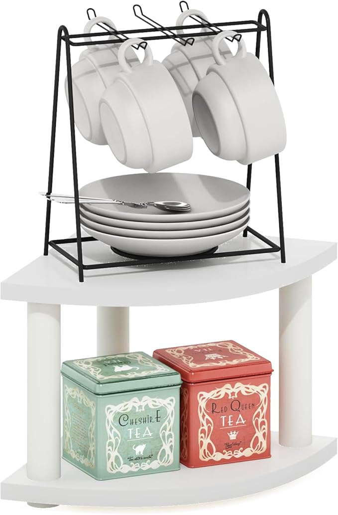 Furinno Turn-N-Tube Kitchen Countertop Organizer, 2-Tier Corner Countertop Organizer Shelf, Corner Shelf, for Kitchen, Pantry, Organizers and Storage, White