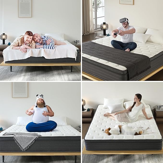 - 【Individual Pocket Springs: Tailored Support and Reduced Disturbance】Equipped with individual pocket springs, our mattress stands out for its precise support, contouring to the unique curves of your body for targeted comfort. Unlike conventional spring systems that span the entire mattress, each pocket spring operates independently, minimizing motion transfer. This means that when you move or adjust your position during sleep, only the springs beneath you will compress, ensuring a peaceful night's rest for both you and your partner. The robust wire gauge ensures sufficient support, making it ideal for those who prefer a softer feel but require enhanced support due to a larger build.