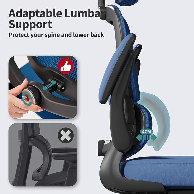 TRALT Office Chair Ergonomic Desk Chair, 330 LBS Home Mesh Office Desk Chairs with Wheels, Comfortable Gaming Chair, High Back Office Chair for Long Hours (Black+Blue)