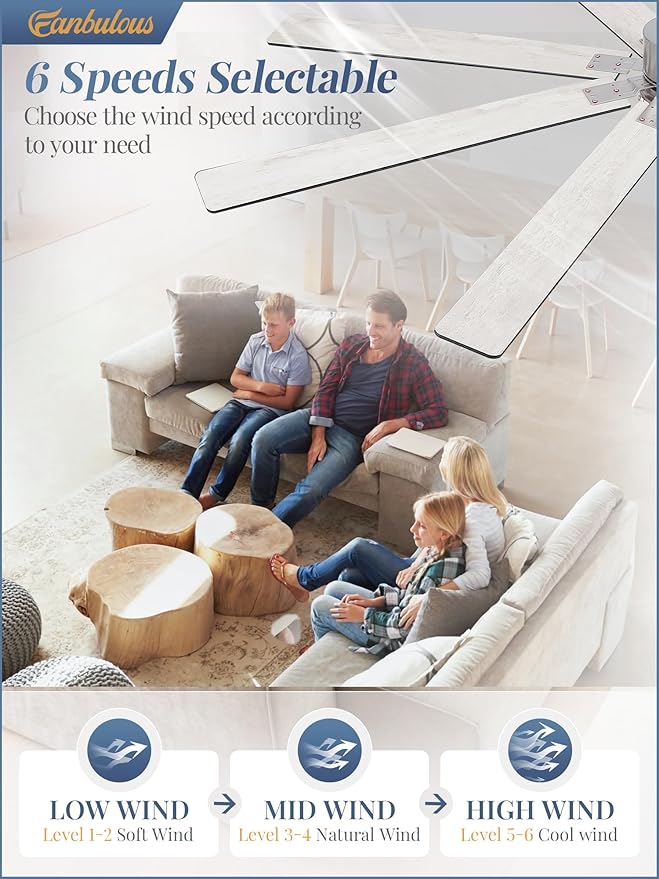 - Multiple functions 8 blades 84 inch Ceiling fan: With 1-6 wind speed settings and a silent DC reversing fan, this powerful model ensures the best possible outcome whatever the climate-either in summer or winter. This ceiling fan also as a modern home decor for lighting our room as we provide double-sided blades