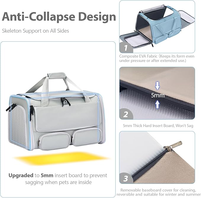 - [Anti-Collapse Structure for Stability]: Built with a 5mm thick hard base insert and EVA frame, the carrier stays firm and stable without sagging. Ensures pets always have a solid, comfortable space to rest.