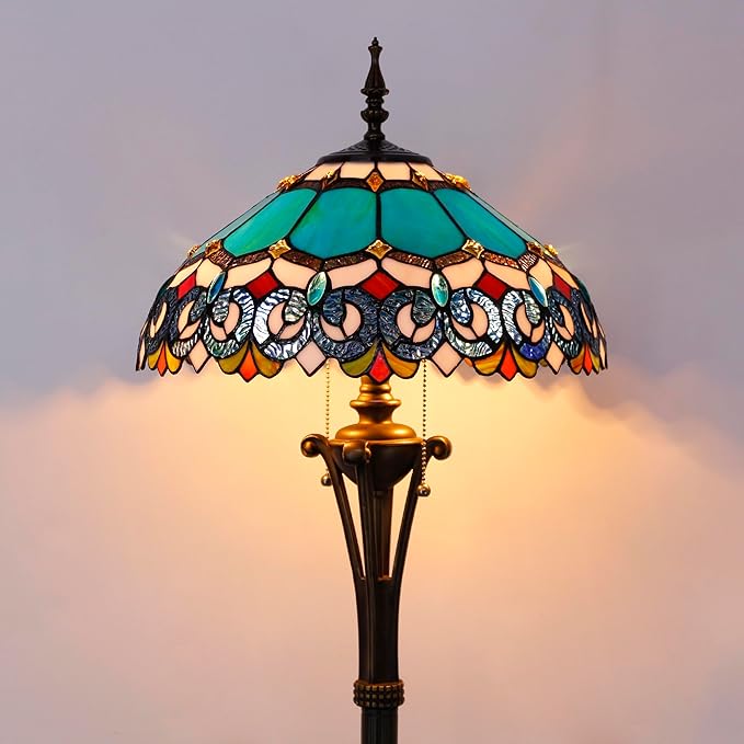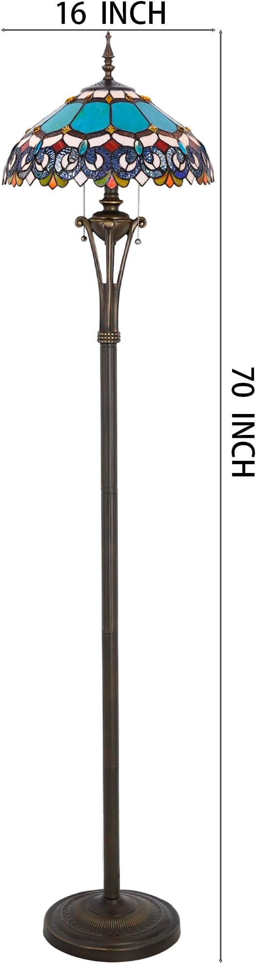 Tiffany Floor Lamp Blue Stained Glass Jewelry Baroque Standing Reading Light 16X16X70 Inches Antique Pole Corner Lamp Decor Bedroom Office Living Room