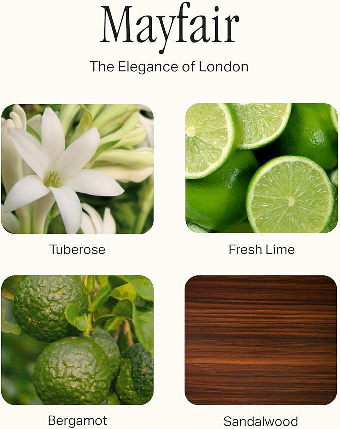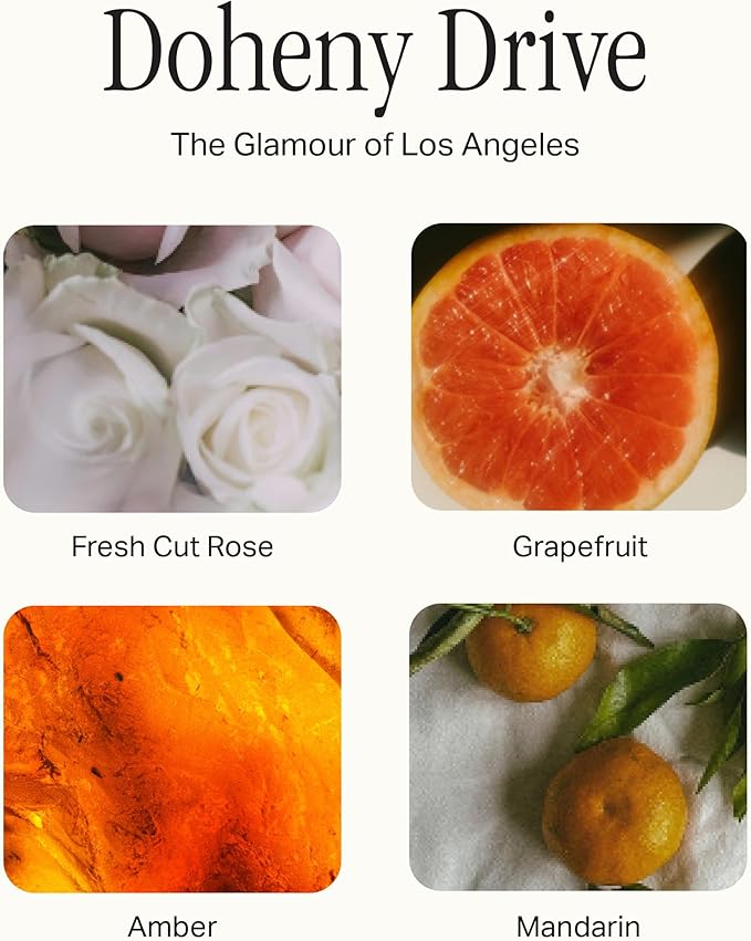- SCENTS: This candle set includes the scents Highrise, Mayfair, Terrace View and Doheny Drive